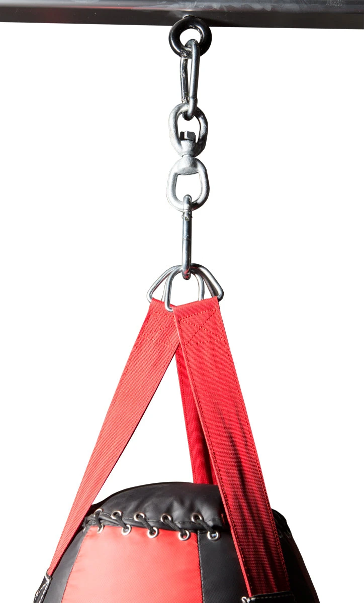 The ideal addition for all heavy bags with nylon hanging straps. Solid steel swivel assembly allows heavy bags to rotate without tangling up or twisting the nylon hanging straps. The ultimate heavy bag swivel assembly for gyms and home use. Complete with 2 heavy-duty spring hooks to attach heavy bag and to ceiling mount. Professional grade swivel for tangle free use. For heavy bags up to 150 lbs.