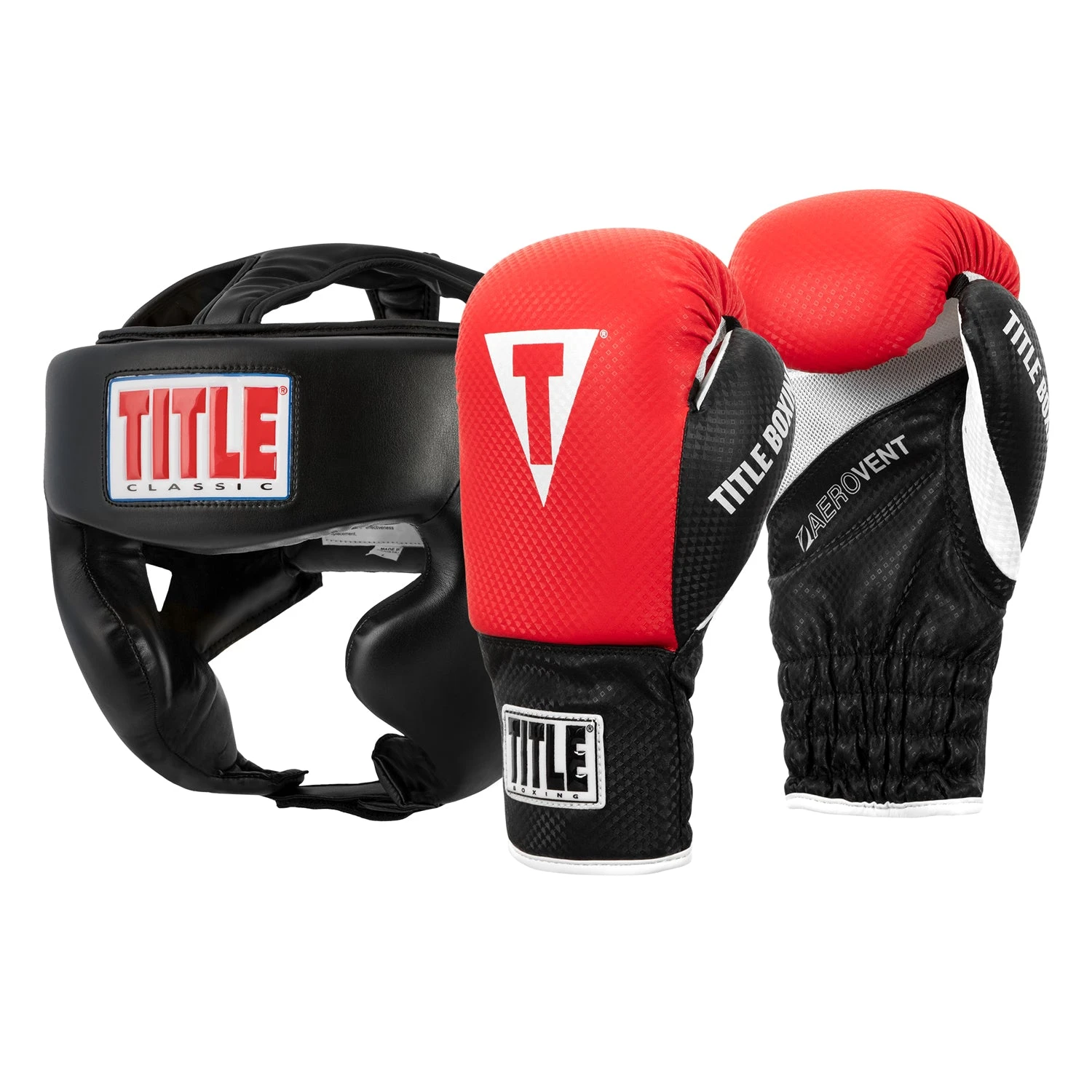 Set Includes: TITLE Classic Hi-Performance Headgear 2.0 (CTHG2) and TITLE Aerovent Youth Boxing Gloves (YGLV)